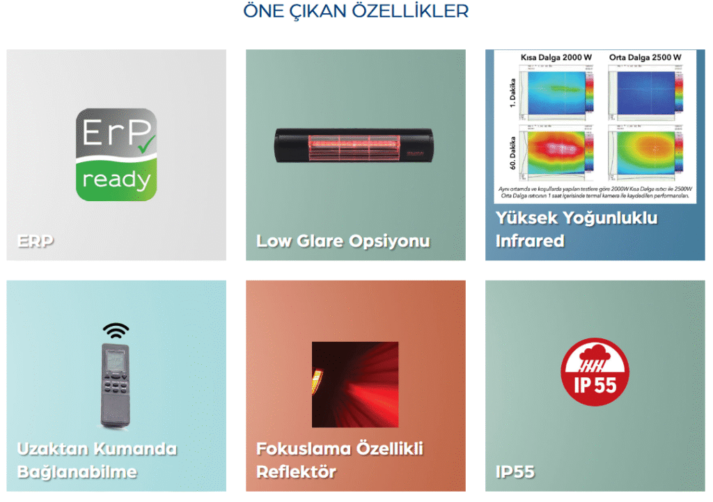 Kısa dalga ürünlerin ışınım iletme kabiliyeti daha yüksek olduğundan özelikle dış ortam ısıtması veya spot ısıtma ihtiyacı olan yerlerde daha verimli ve etkili olurlar. Bu sayede daha az enerji harcayarak daha etkili ısıtma yapmak mümkündür.