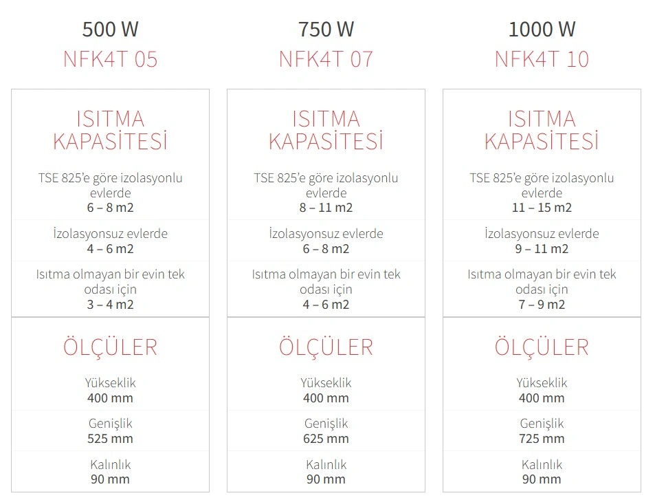 Nobo’nun bu ince ve şık serisinin farklı güç seçeneklerinin hangi metrekareler için uygun olduğunu öğrenmek ister misiniz?