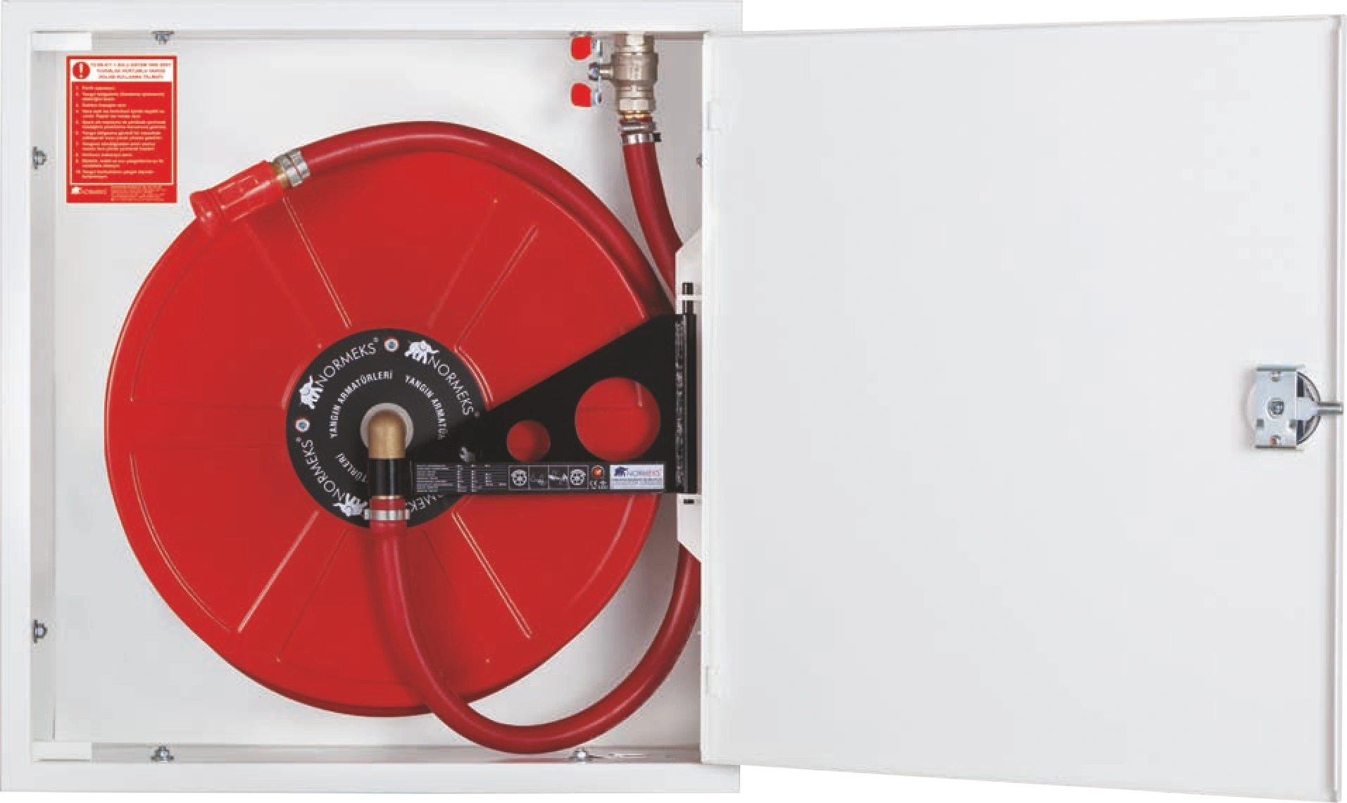 NORM TEKNİK olarak NORMEKS markası altında, TS EN 671-1 belgeli yarı sert kauçuk hortumlu yangın dolapları ve TS EN 671-2 belgeli yassı hortumlu yangın dolapları imalatı yapılmaktadır.
