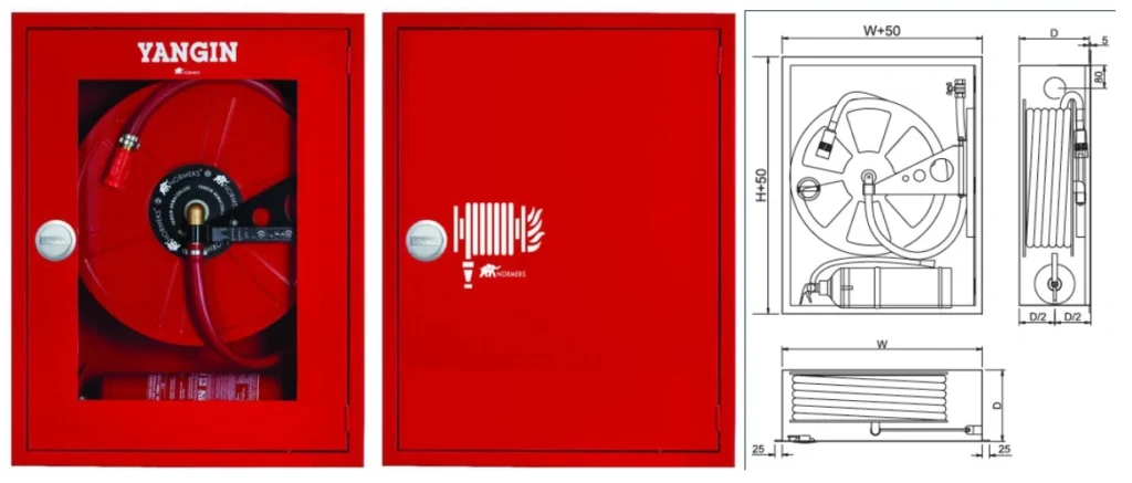 çerçevesi, iç kasaya yangın dolabının sağ ve sol